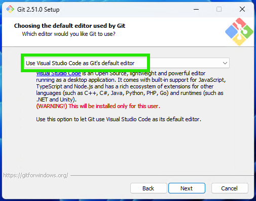 - Download the installer for your operating system (Windows, macOS, or Linux). By default, this will be the “User Installer” for your system, which is exactly what we want.