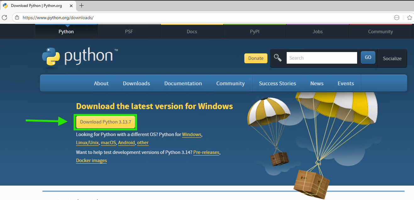 - Go to the official Python website: python.org/downloads/