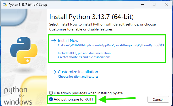 - Run the installer. Crucial Step for Windows Users: On the first screen of the installer, make sure to check the box that says “Add Python to PATH”. This will allow you to run Python from your terminal easily. For macOS, the installer handles this for you.