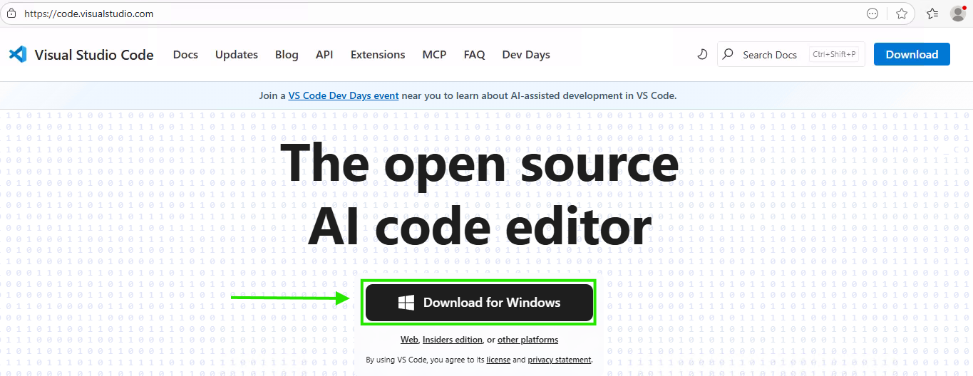 - Go to the official VSCode website: code.visualstudio.com