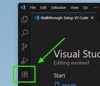 - Look for the Extensions icon on the left-hand sidebar (it looks like four squares). Click on it.