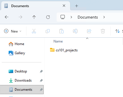 . Navigate to and select thecs101_projects