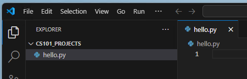 - Create a Python File: In the Explorer view on the left side of VSCode, you should now see your