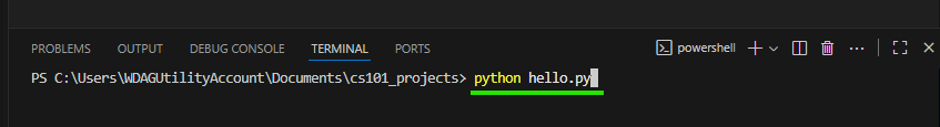 . A panel will appear at the bottom of VSCode. This is your command line, where you will tell the computer to run your code.You are now fully set up and ready to code!