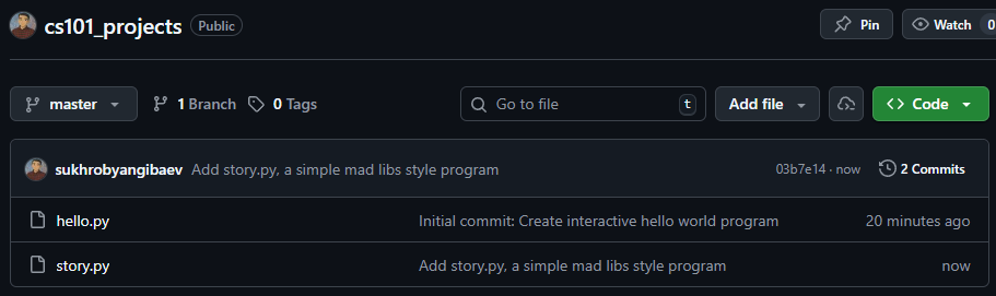 Now check your GitHub page again. The story.py
